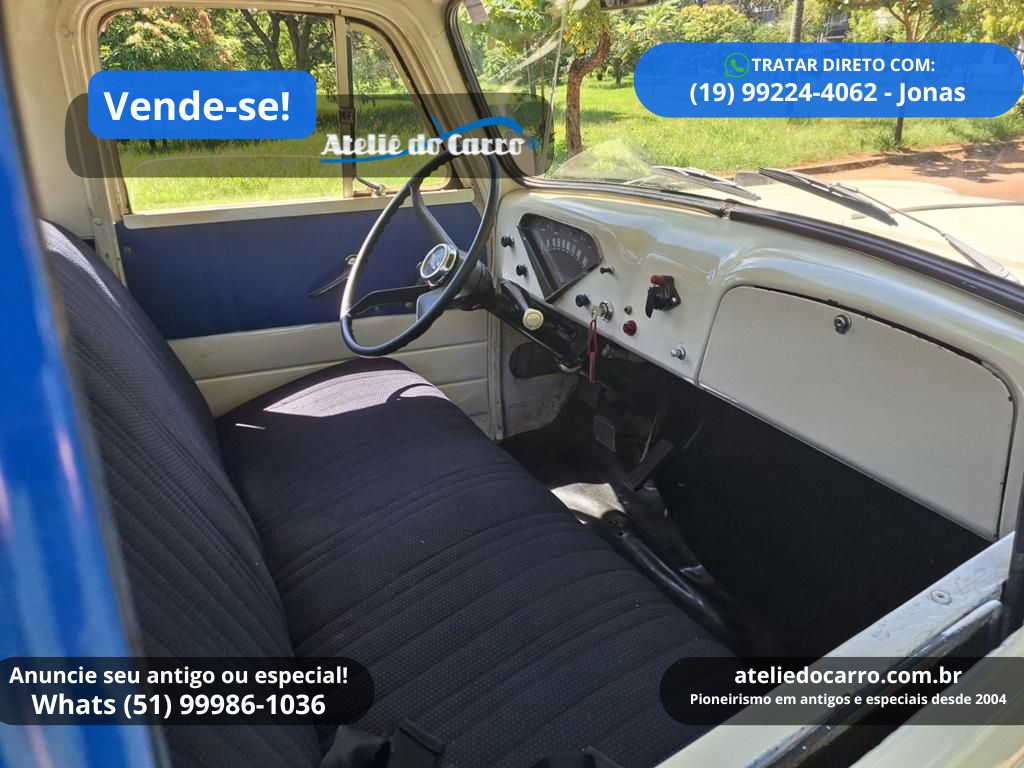 | Descrição | Chevrolet Brasil 1963, instalado motor 6 cilindros 4.1 à gasolina do Opala, 170 cv, 85.000 km marcando no odômetro, nas cores Azul e Branca. Ótima apresentação, originalidade e rara procedência, estando na mesma família desde zero km. Chassis íntegro sem qualquer comprometimento. Carroceria alinhada com pintura refeita em excelente padrão, com caçamba pintada de preto na parte interna. Documentação em dia, com numeração do motor cadastrada. Mecânica em funcionamento normal, rodando perfeitamente. Parte elétrica revisada. Interior em ótimo estado com o estofamento do banco já refeito. Rodas originais com calotas e pneus bons. Solicite mais informações diretamente com o proprietário, conforme dados abaixo. R$ 145.000 TRATAR DIRETO NO CEL / WHATS: (19) 99224.4062, com Jonas. E-mail: jonaspaulodecarvalho@gmail.com Clique no link para falar diretamente com o proprietário: https://api.whatsapp.com/send?phone=5519992244062 Disponível para visitação em Piracicaba – SP *ATENÇÃO: * ESTE VEÍCULO ESTÁ ANUNCIADO PELO VENDE-SE DO ATELIÊ DO CARRO. AS IMAGENS, INFORMAÇÕES E A NEGOCIAÇÃO, SÃO DE INTEIRA RESPONSABILIDADE DO PROPRIETÁRIO OU VENDEDOR. O ATELIÊ DO CARRO NÃO SE ENVOLVE NA NEGOCIAÇÃO DESTE VEÍCULO* 👉 ANUNCIE SEU ANTIGO no Vende-se do Ateliê do Carro. Clique no link abaixo para falar conosco: https://api.whatsapp.com/send?phone=5551999861036 Veja o vídeo abaixo: |