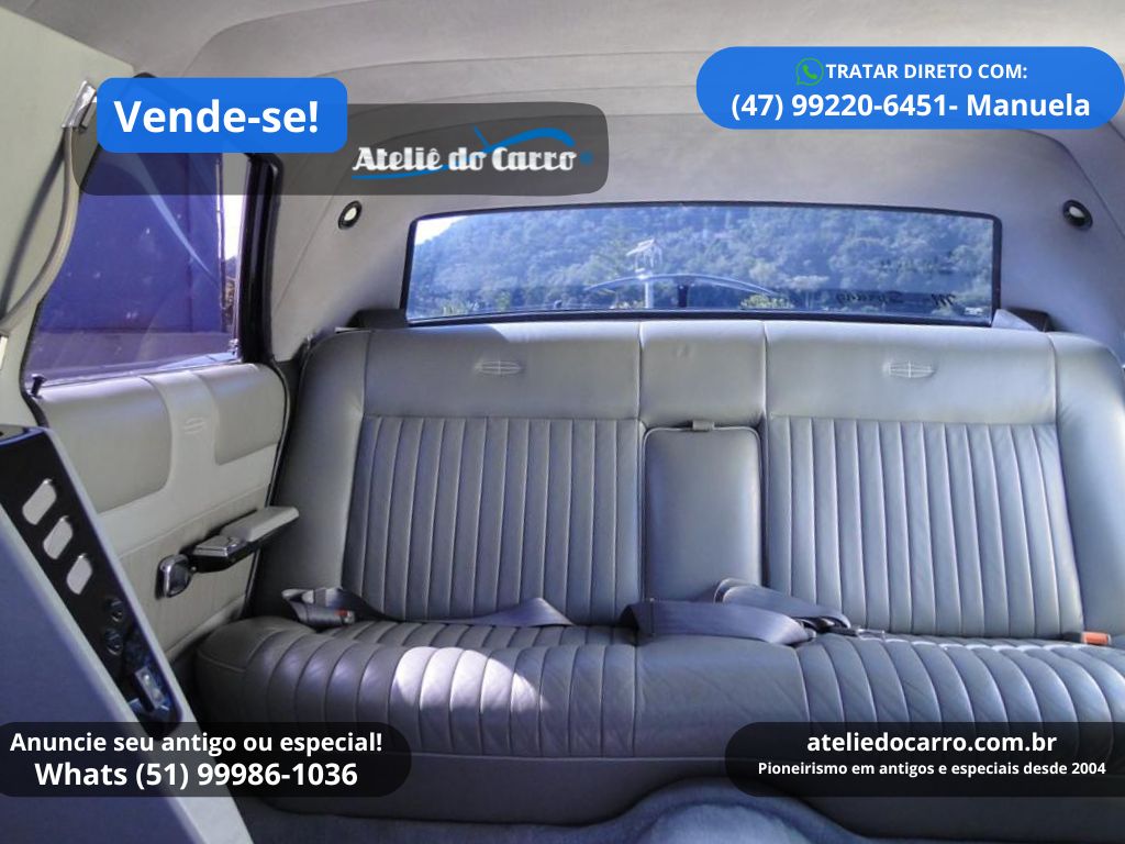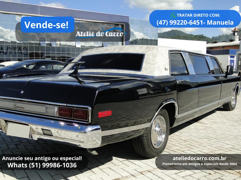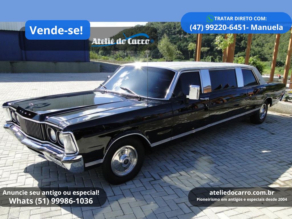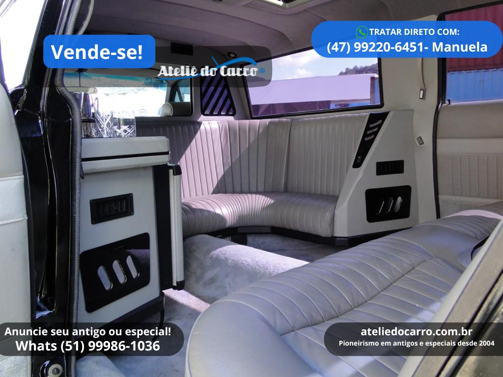 | Descrição | Ford Landau 1982 convertido para Limusine, motor V8 302 5.0 à gasolina com 199 cv, 11.000 km marcando no odômetro, na cor Preto Bali. Excelente apresentação, sendo a conversão para Limusine muito bem realizada. Ideal para quem deseja investir em locações para eventos como casamentos, aniversários, passeios entre outros, oferecendo muito estilo e conforto para seus clientes. Toda a mecânica é original, funcionando normalmente. Habitáculo íntimo luxuoso e confortável, equipado com sofá em L e banco traseiro revestidos em couro, ar condicionado com difusores bem distribuídos, barzinho com frigobar, som com CD player, DVD, TV digital com tela de 24”, teto solar e vidros com comandos elétricos, inclusive o vidro que separa o habitáculo do motorista, luzes de salão, cinzeiros, película nos vidros, entre outros itens que tradicionalmente equipam veículos deste porte. Habitáculo do motorista com bancos individuais, console com comando elétrico dos vidros e retrovisores, voltímetro, conta giros, manômetro do óleo, temperatura do motor, CD player Pioneer, ar condicionado, ar quente e ainda presente o rádio toca fitas Philco Ford original de fábrica no painel. Naturalmente o motorista pode contar também com o conforto da direção hidráulica e o câmbio automático. Rodas e calotas com pneus ótimos. Na mesma família há quase 30 anos. Excelente oportunidade, pois fazer um igual nesse padrão, supera facilmente o valor de venda. R$ 150.000 NEGOCIE DIRETO COM O PROPRIETÁRIO: CEL / WHATS: (47) 99220-6451, com Manuela. E-mail: manuela.blodorn@cativa.com.br Clique no link para falar diretamente com o vendedor: https://api.whatsapp.com/send?phone=5547992206451 Disponível para visitação em Blumenau – SC *ATENÇÃO: * ESTE VEÍCULO ESTÁ ANUNCIADO PELO VENDE-SE DO ATELIÊ DO CARRO. AS IMAGENS, INFORMAÇÕES E A NEGOCIAÇÃO, SÃO DE INTEIRA RESPONSABILIDADE DO PROPRIETÁRIO OU VENDEDOR. O ATELIÊ DO CARRO NÃO SE ENVOLVE NA NEGOCIAÇÃO DESTE VEÍCULO* 👉 ANUNCIE SEU ANTIGO no Vende-se do Ateliê do Carro. Clique no link abaixo para falar conosco: https://api.whatsapp.com/send?phone=5551999861036 VEJA O VÍDEO ABAIXO:
