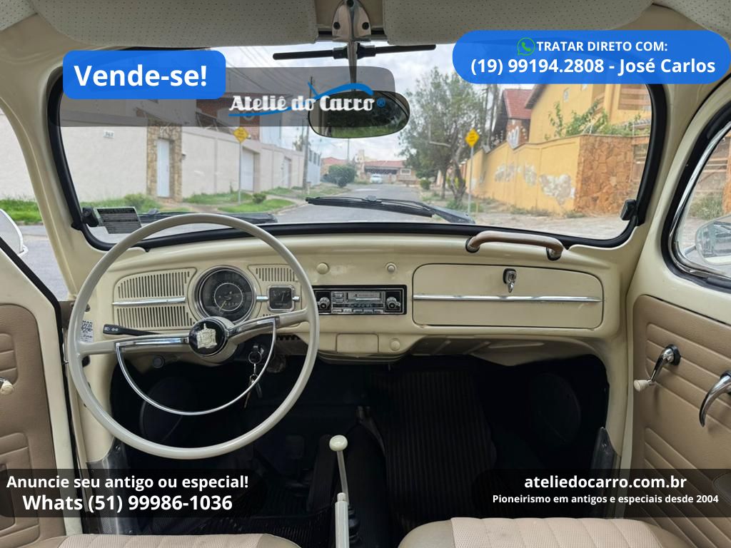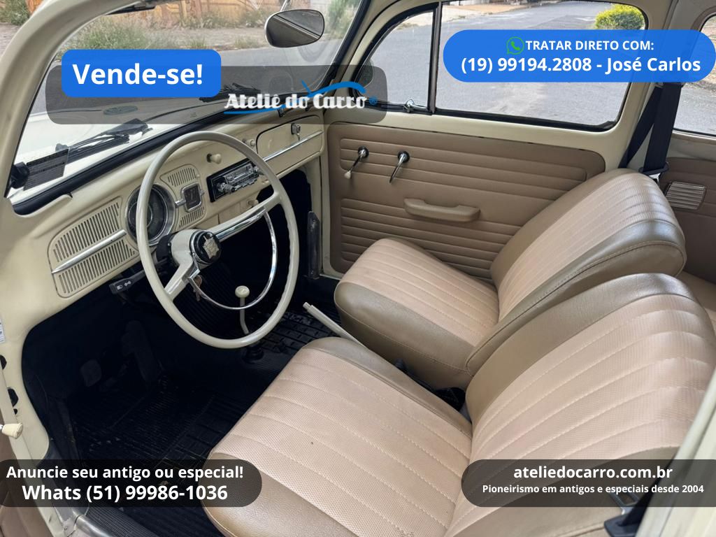 | Descrição | Fusca 1970, motor 1300 à gasolina, 46 cv, 25.000 km marcando no odômetro, nas cores Branco Lotus e Bege Nilo. Ótima apresentação, estrutura em ordem, sendo totalmente restaurado em 2018. Documentação em dia, com placa preta e apto à imediata transferência. Mecânica totalmente revisada em fevereiro de 2026, em justo funcionamento. Interior muito bonito e novo, revestido em vinil bege semelhante ao padrão original. Equipado com rodas com tala larga, calotas originais e pneus radiais com mais de meias vida. Som com toca-fitas TKR e alto-falantes triaxiais. Oportunidade para a quem procura um Fusca levemente diferenciado, conservado com valor acessível, pronto para curtir! R$ 39.000 TRATAR DIRETO NO CEL / WHATS: (19) 99194.2808, com José Carlos. E-mail: defalco@uol.com.br Clique no link para falar diretamente com o proprietário: https://api.whatsapp.com/send?phone=5519991942808 Disponível para visitação em Campinas – SP *ATENÇÃO: * ESTE VEÍCULO ESTÁ ANUNCIADO PELO VENDE-SE DO ATELIÊ DO CARRO. AS IMAGENS, INFORMAÇÕES E A NEGOCIAÇÃO, SÃO DE INTEIRA RESPONSABILIDADE DO PROPRIETÁRIO OU VENDEDOR. O ATELIÊ DO CARRO NÃO SE ENVOLVE NA NEGOCIAÇÃO DESTE VEÍCULO* 👉 ANUNCIE SEU ANTIGO no Vende-se do Ateliê do Carro. Clique no link abaixo para falar conosco: https://api.whatsapp.com/send?phone=5551999861036 VEJA O VÍDEO ABAIXO: |