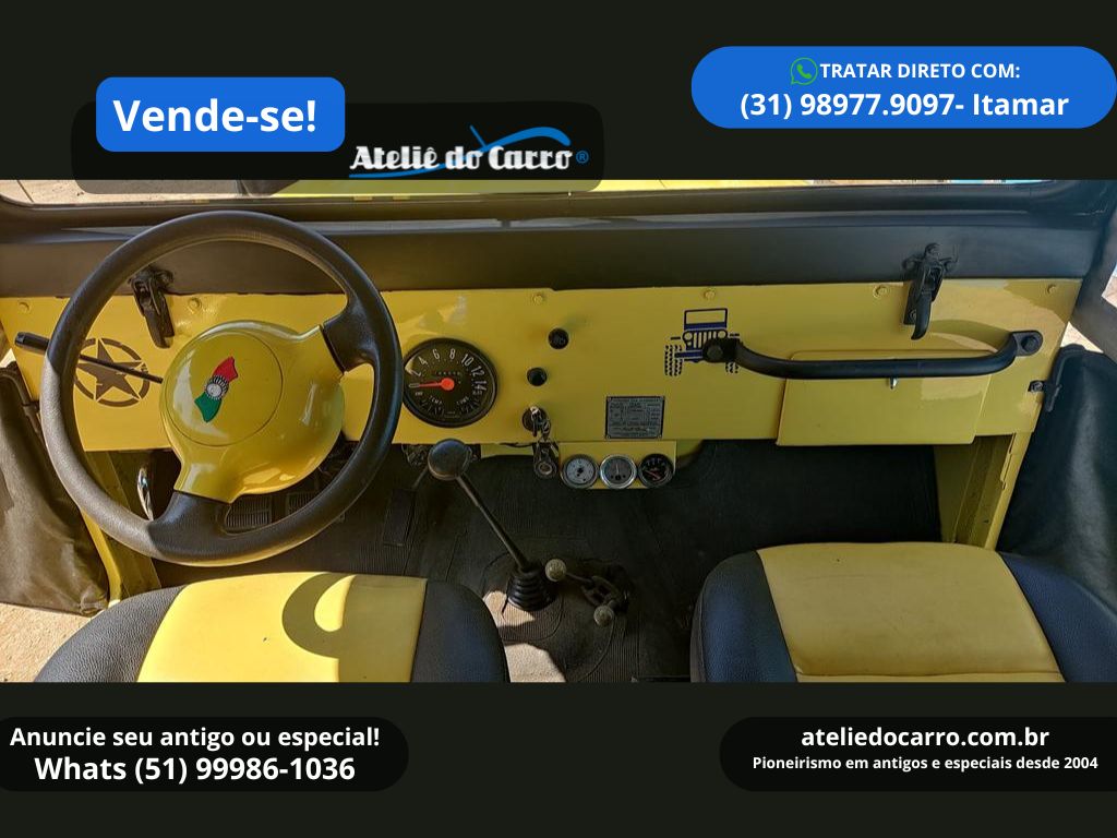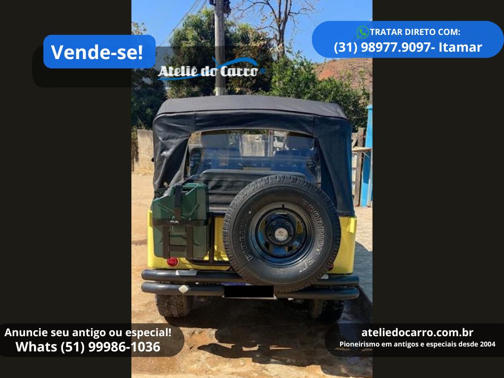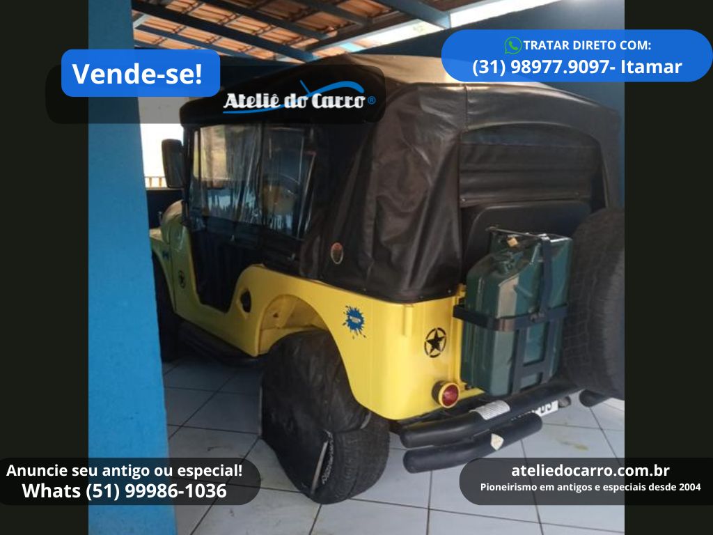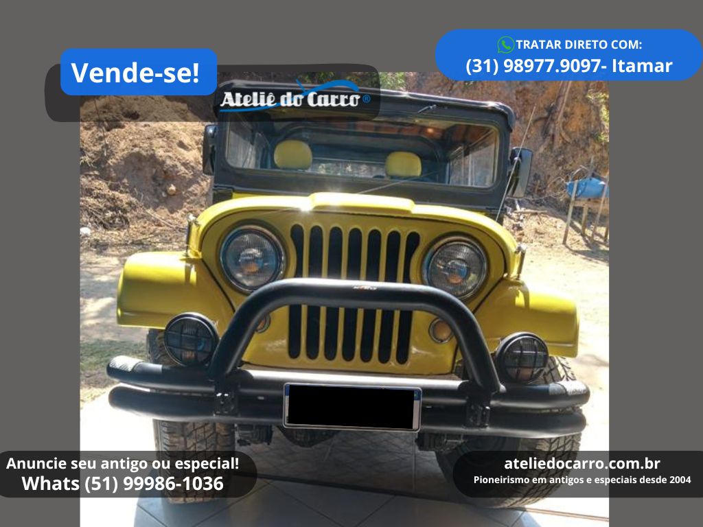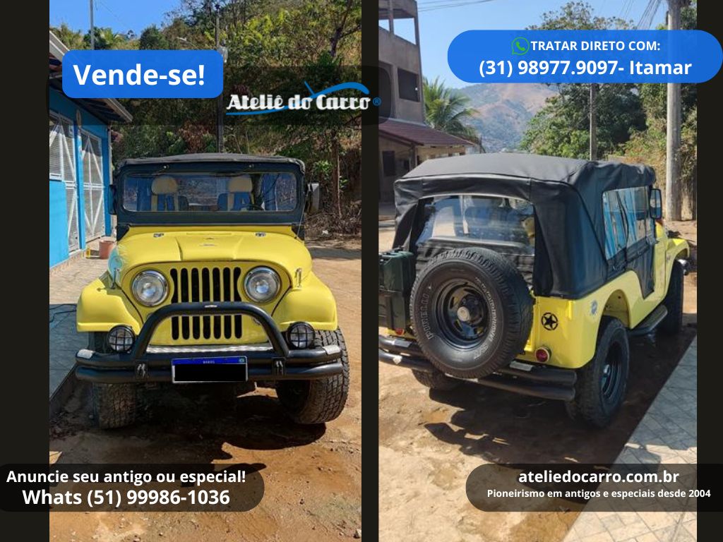 | Descrição | Jeep Willys 1958 CJ5, instalado motor 4 cilindros 2.5 do Chevrolet Opala à gasolina, 90 cv, na cor Amarela. Em ótima apresentação, com o mesmo proprietário desde 2006. Chassis intacto, carroceria com pintura e capota novas. Documentação em dia! Mecânica em ótimo funcionamento, com 4 marchas, tração 4×4, reduzida e roda livre. Jogo de pneus com apenas 5.000 km, mas antigos. Jeep de ótima procedência! Entre em contato com o vendedor para negociar! R$ 59.000 NEGOCIE DIRETO COM O VENDEDOR: CEL / WHATS: (31) 98977.9097, com Itamar. Clique no link para falar diretamente com o vendedor: https://api.whatsapp.com/send?phone=5531989779097 E-mail: itamar@casadoeditor.com.br Disponível para visitação em Timóteo – MG *ATENÇÃO: * ESTE VEÍCULO ESTÁ ANUNCIADO PELO VENDE-SE DO ATELIÊ DO CARRO. AS IMAGENS, INFORMAÇÕES E A NEGOCIAÇÃO, SÃO DE INTEIRA RESPONSABILIDADE DO PROPRIETÁRIO OU VENDEDOR. O ATELIÊ DO CARRO NÃO SE ENVOLVE NA NEGOCIAÇÃO DESTE VEÍCULO* 👉 ANUNCIE SEU ANTIGO no Vende-se do Ateliê do Carro. Clique no link abaixo para falar conosco: https://api.whatsapp.com/send?phone=5551999861036 VEJA O VÍDEO ABAIXO: |