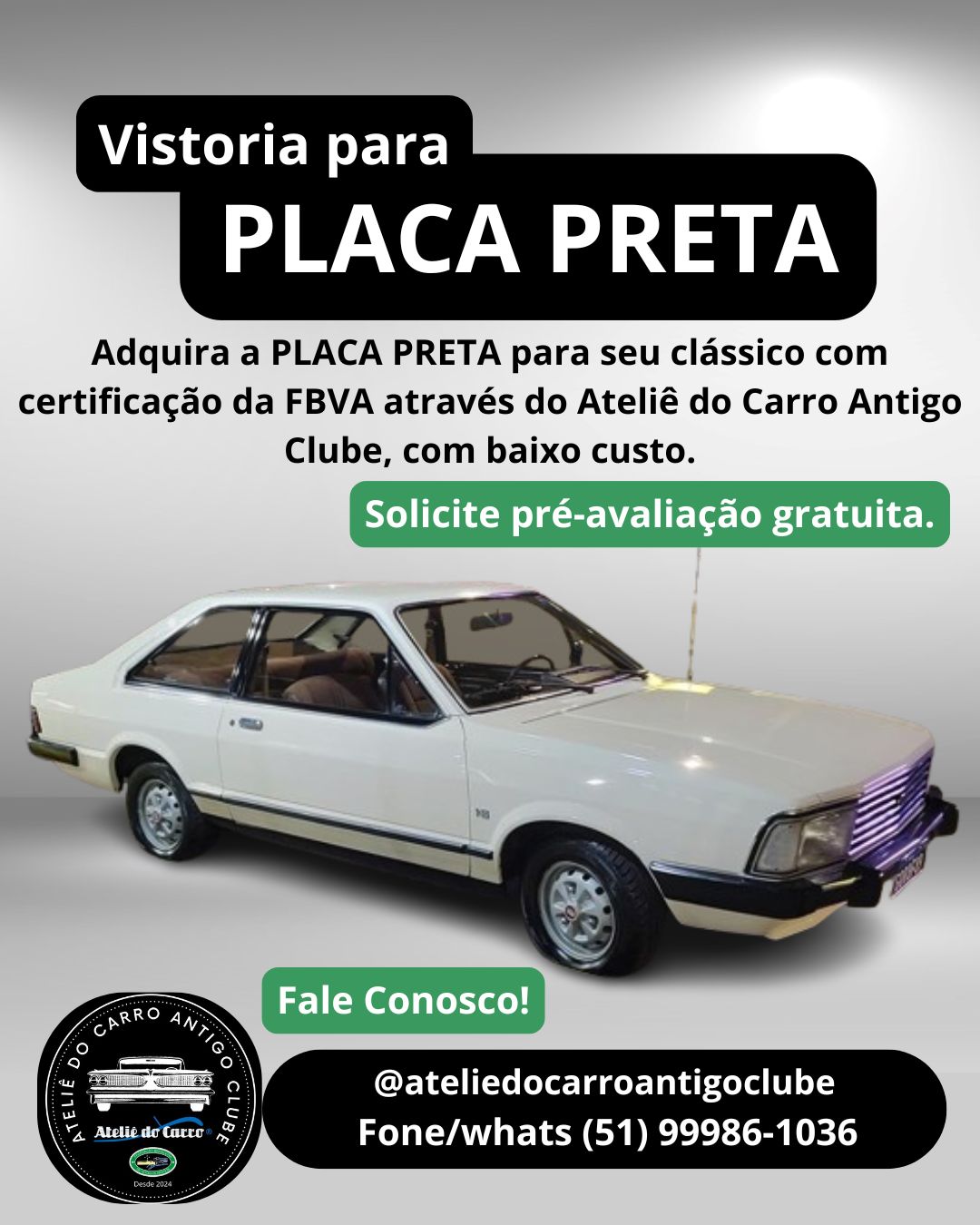| Descrição | 🚘 Obtenha a PLACA PRETA com o Ateliê do Carro Antigo Clube! ✅ Nossas Vantagens: