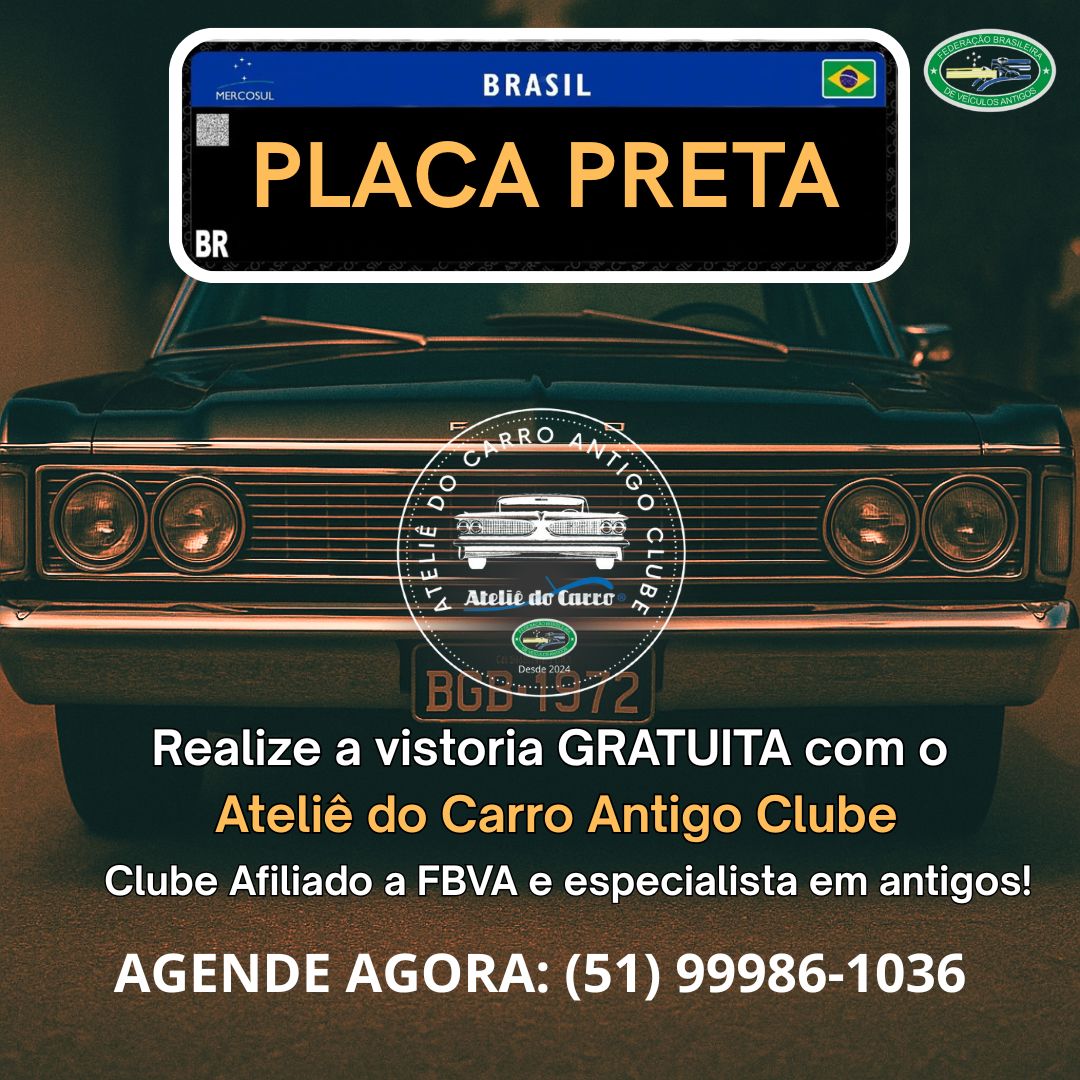 Obtenha a PLACA PRETA com legitimidade e baixo custo – Ateliê do Carro Antigo Clube – Filiado à FBVA